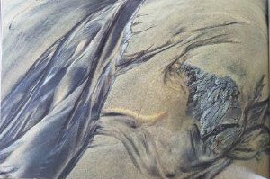 Mij valt vooral op dat de link tussen foto en gedicht tamelijk arbitrair is. Er had net zo goed een heel andere foto naast het gedicht kunnen staan (of een heel ander gedicht naast de foto). Het altijd hardnekkig optredende probleem dat één plaatje meer zegt dan duizend woorden, en één gedicht meer dan duizend plaatjes! Een interessant plaatje, dat wel. Het doet een beetje denken aan een spelletje dat vroeger op tv werd gespeeld, waarin deelnemers door een detail van een voorwerp moesten raden wat het was. Is het een woestijn? Zijn het kanalen op de planeet Mars? Of is het gewoon een stuk strand hier in de buurt? Opmerkelijk: het gedicht heeft minder uitleg nodig dan de foto. Het slaat m.n. in de laatste strofe de populaire toon aan van poëzie die je eerder in een tijdschrift als Libelle zou verwachten, dan in een gerenommeerde dichtbundel. Het geeft zichzelf – in de woorden van de eerste strofe – (te) makkelijk ‘uit handen’. In het hoofdstuk ‘sun-moonscapes’ staat de volgende tekst: