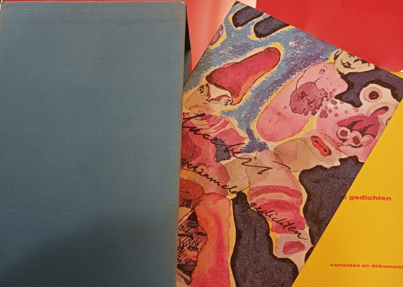Ondertussen was het nog wel 1974; op 8 februari kocht ik van mijn verjaardagsgeld de bundel die heel lang de mooiste bleef op mijn groeiende bundelplank: de cassette met de Verzamelde gedichten van Lucebert en het variantenapparaat. Vooral van dat laatste boek was ik erg onder de indruk, de gedichten van Lucebert omarmde ik al langer. Van Redbad Fokkema had ik geleerd, dat varianten een mooie inkijk geven in de gedachtegangen van de dichter, dus dat gaf mij voldoende stof tot inkijken en overdenken. Zoals de titel het orakel van monte carlo waar in de eerste publicatie nog het mirakel van monte carlo stond. Zo’n omzetting van mirakel naar orakel zegt veel over hoe de dichter tegen zijn opponent aankijkt. Kloos is geen godswonder, maar iemand die toekomstvoorspellingen doet. En niet zomaar: in relatie tot monte carlo, het gokparadijs bij uitstek ligt een nieuwe betekenis van orakelen voor de hand: raaskallen.
