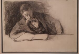 Verhaeren, lezend. Potloodtekening door Marthe Massin, echtgenote van Emile Verhaeren